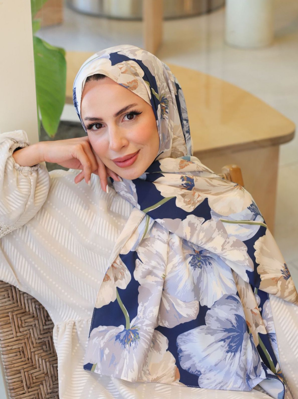 Le châle en crêpe à motif floral Azalya à sa place dans toutes les garde-robes avec son design toutes saisons.