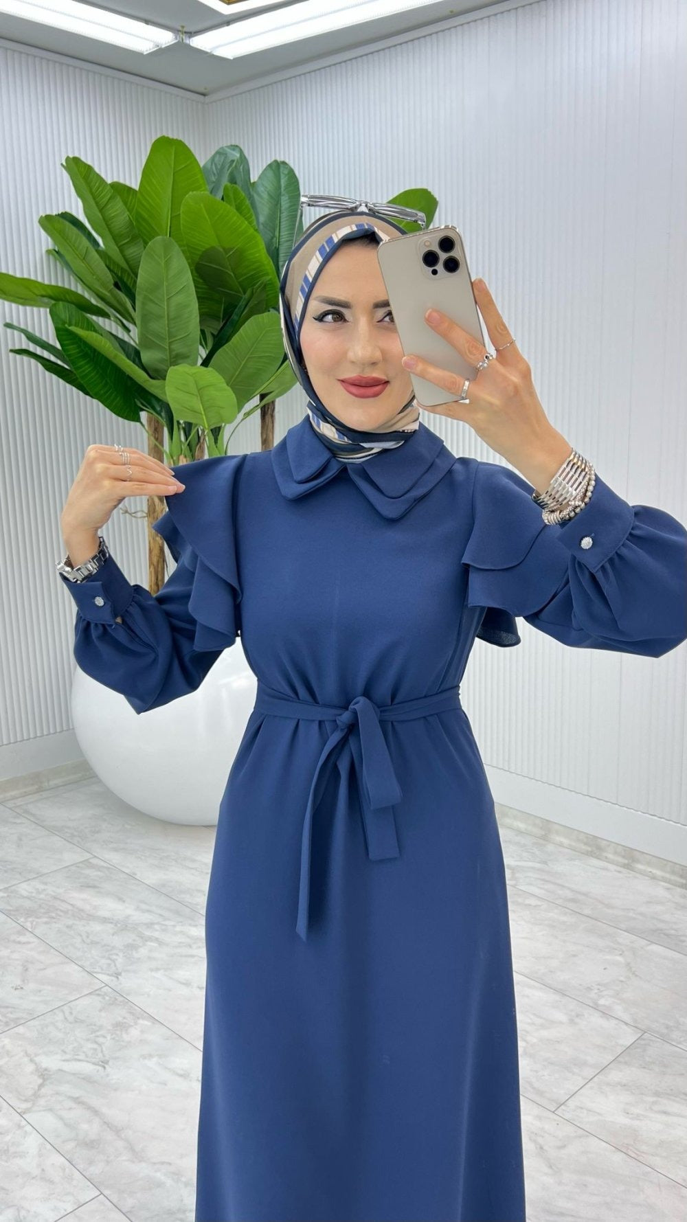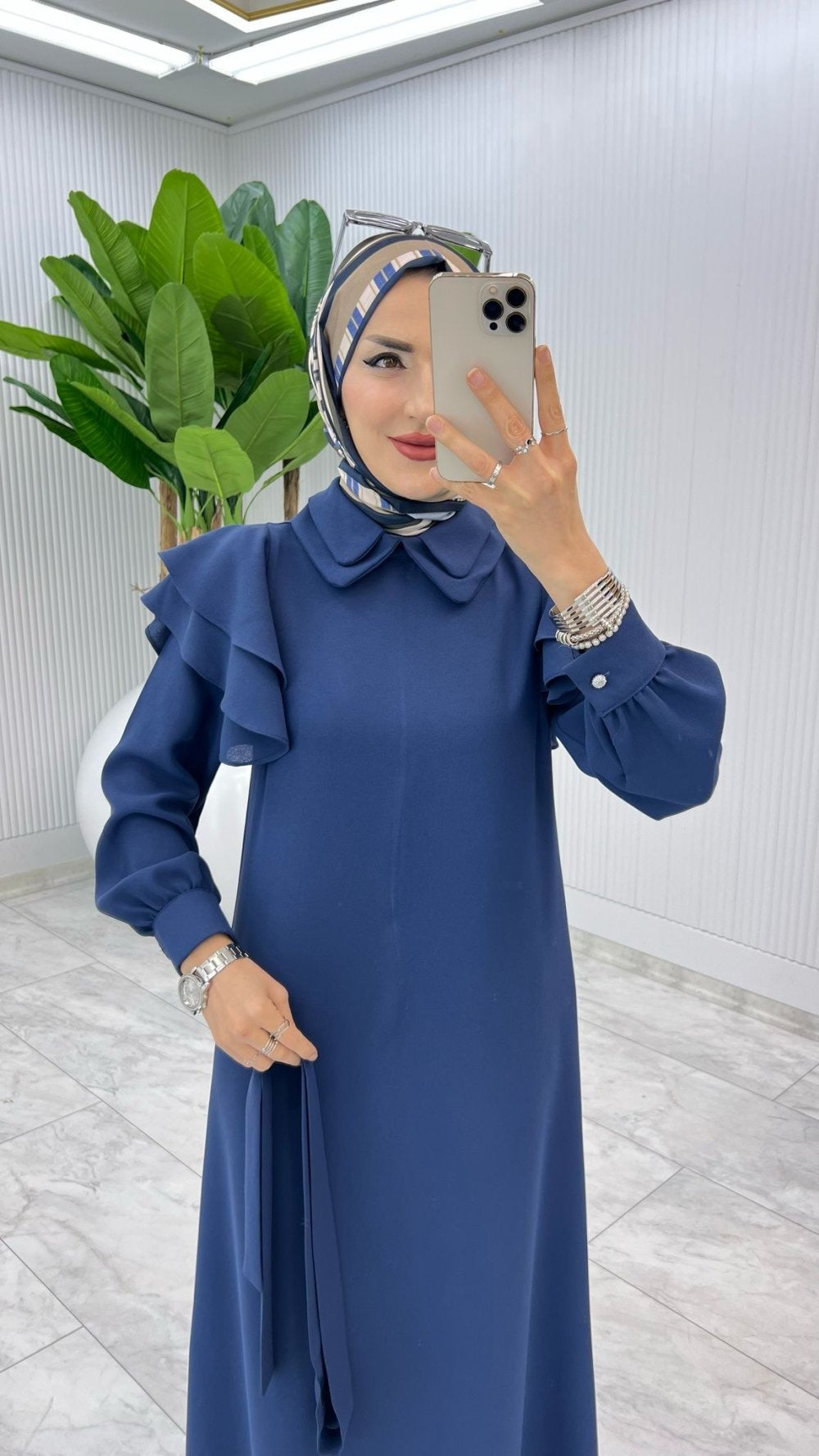 Robe longue élégante à volants - Indigo