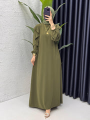 Élégance et confort se rencontrent dans cette robe maxi en vert olive. Dotée de manches volantes délicates et d'une coupe fluide, elle sublime toutes les silhouettes. Parfaite pour les occasions spéciales ou pour une sortie décontractée, cette robe est un incontournable de votre garde-robe. Associez-la à des accessoires dorés pour un look chic et raffiné !